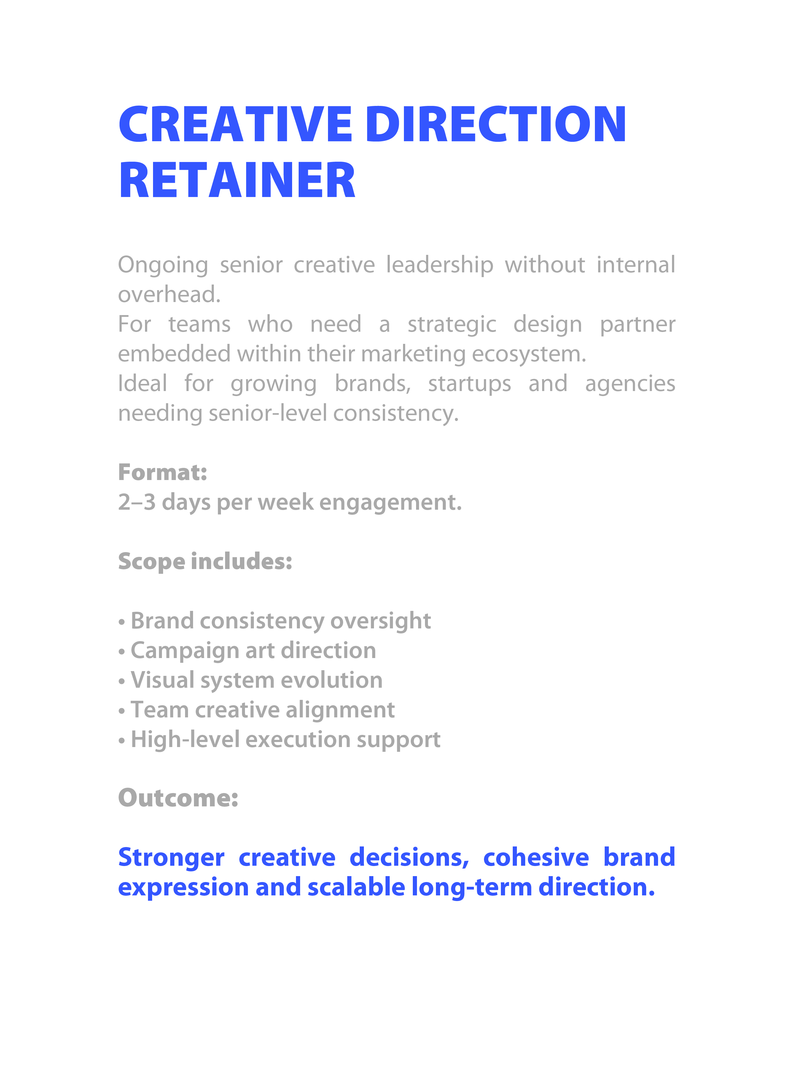 • Marketing teams seeking senior creative oversight